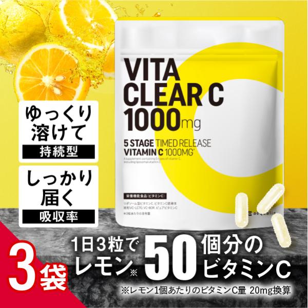 ビタミンC サプリメント ビタクリアC 3袋セット リポソーム型ビタミンC、ビタミンC誘導体、VC-LC70、VC-80R、ピュアビタミン 24時間タイムリリース処方