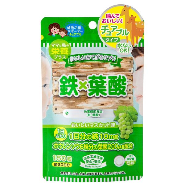おいしいお手軽サプリ 鉄×葉酸 150粒 30日分/ジャパンギャルズ/栄養機能食品/葉酸サプリメント/マスカット味/水なしOKチュアブルタイプ
