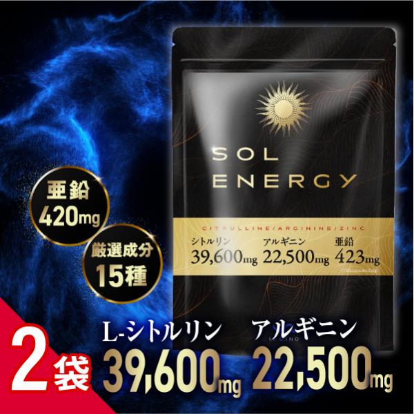 ソルエナジー シトルリン サプリメント 2袋セット 高品質シトルリン65754mg/1袋 アルギニン 亜鉛 マカ 栄養機能食品 180粒