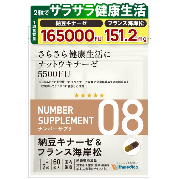 ナンバーサプリ08 ナットウキナーゼ サプリ 5500FU フランス海岸松 納豆菌 納豆キナーゼ【9成分配合/全成分量明記】(国産 無添加 サプリメント)(60粒/30日分)