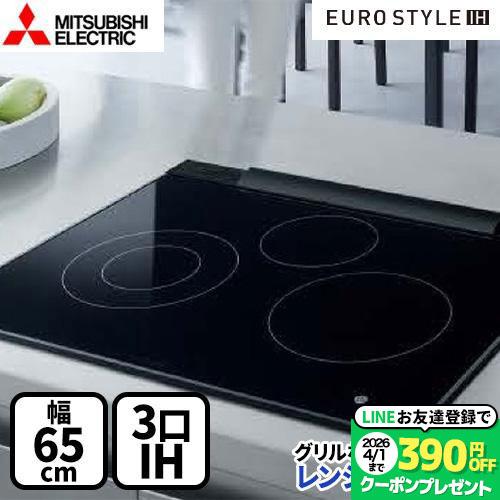 【無料3年保証】ユーロスタイルIH IHクッキングヒーター 幅65cm 三菱 CS-T322BFR 3口IH ユーロブラック【工事対応不可】