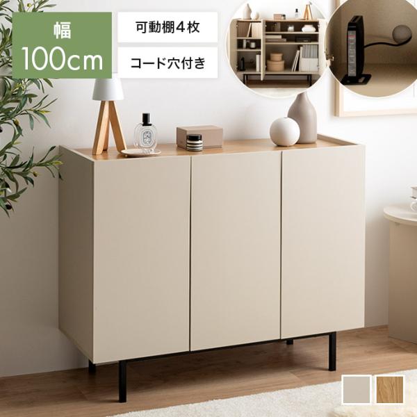 Alq アルク キャビネット 本棚 チェスト ラック サイドボード シェルフ ブックシェルフ 書棚 棚 ディスプレイ 収納 扉 可動棚 大容量 黒脚 脚付き 幅100
