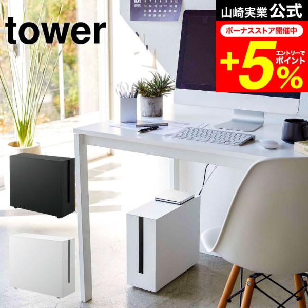 特典付[ ゲームコントローラーも入る引き出し付きモニター台 タワー ]山崎実業 tower 50cm 卓上 引き出し yamazaki 公式 ブラック ホワイト 10187 10188