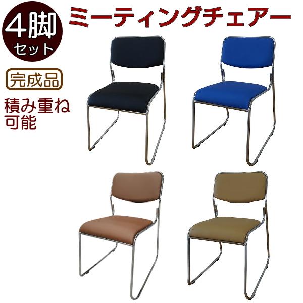 ミーティングチェアー(4脚セット) 組立不要 パイプイス 積み重ね可能 完成品 スタッキングチェアー ミーティングチェア スタッキングチェア