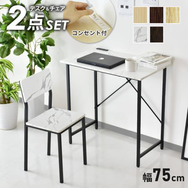 デスク チェア セット 2点セット 2口コンセント付き 机 椅子 デスクワーク 作業台 在宅ワーク リモート コンパクト シンプル おしゃれ ナノ