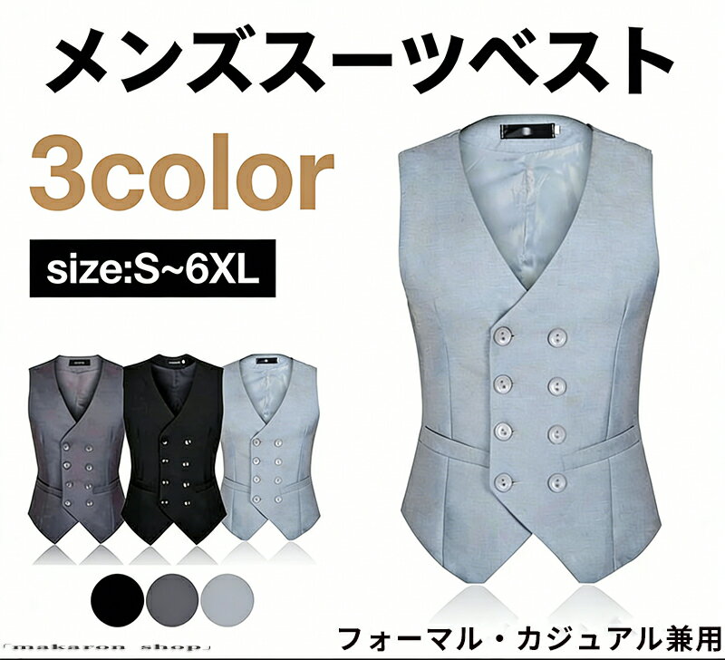 商品名 スーツベスト メンズ 大きいサイズ 黒 グレー スッキリ 秋冬 無地 前開き フォーマル カジュアル スマート 結婚式 卒業式 入社式 秋新作 トップス 成人式 カラー ラック ライトグレー ダークグレー サイズ S-6XL 【素材】 ポリエステル おすすめポイント メーカー希望小売価格はメーカーカタログに基づいて掲載しています スーツベストをご紹介します 飽きの来ないベーシックなデザインで、どんなスーツにも合わせやすい着回し力バツグン♪ 柔らかく肌触りの良い生地、ロングシーズンご着用いただけます♪ 定番で使いやすい3カラーをご用意いたしました 《1》スッキリとしたシルエットで落ち着いた質感に仕上げています♪ 《2》ウエスト調整可能なバックストラップ 《3》カジュアルからセミフォーマルまで、どんなシーンでも格好良く魅せます ●ギフトにも最適: 誕生日・クリスマス・プレゼントに喜ばれるデザイン。かわいいだけでなく実用性もあるので、贈って喜ばれるアイテムです。 S【cm】着丈:55-62 バスト:84 肩幅:32 ウエスト:80 M【cm】着丈:56-63 バスト:88 肩幅:33 ウエスト:84 L【cm】着丈:57-64 バスト:92 肩幅:34 ウエスト:88 XL【cm】着丈:58-65 バスト:96 肩幅:35 ウエスト:92 2XL【cm】着丈:59-66 バスト:100 肩幅:36 ウエスト:96 3XL【cm】着丈:60-67 バスト:104 肩幅:37 ウエスト:100 4XL【cm】着丈:61-68 バスト:108 肩幅:38 ウエスト:104 5XL【cm】着丈:62-69 バスト:112 肩幅:39 ウエスト:108 6XL【cm】着丈:63-70 バスト:116 肩幅:40 ウエスト:112 ●【ご注意】サイズは測り方によって若干の誤差が生じる場合があります。2-3cmの誤差は予めご了承ください。掲載の商品画像と実際の色は、撮影の状況、モニターの表示などによ 関連キーワード お買い物マラソンSALE対象 セール sale 買い回り かいまわり 買いまわり 買い回りエントリー 買い周りエントリー 買い周りマラソン 1000円ポッキリ 2026 2026福袋 福袋2026 福袋 初売りセール プチギフト ショッピング まだ 間に合う 予約 できる 1月 2月 3月 4月 5月 6月 7月 8月 9月 10月 11月 スーパーセール スーパーSALE 大感謝祭セール 大感謝祭 大感謝祭セールsale 楽天大感謝祭 大感謝祭セールタイムセール 年末大感謝祭 年末★超大感謝祭 年末特別企画 年末 年末年始セール 年末年始 初売り クリスマスプレゼント クリスマス 買い物マラソン おかいものマラソン タイムセール中 マラソンクーポン クーポンあり★お買い物マラソン お買い物マラソンセール 楽天お買い物マラソン 大感謝祭り マラソン限定 マラソン限定sale マラソンセール Xmas 販売開始前 楽天 ポイント 販売期間前 スーパーセール対象商品 スーパーセール半額 スーパーセール超目玉 スーパーセール目玉商品 タイムセール 早い者勝ち 在庫処分セール 楽天スーパーセール 楽天スーパーSALE 売り尽くし 春 夏 秋 冬 春夏 秋冬 夏物 春物 秋物 冬物 最終 送料無料商品名 スーツベスト メンズ 大きいサイズ 黒 グレー スッキリ 秋冬 無地 前開き フォーマル カジュアル スマート 結婚式 卒業式 入社式 秋新作 トップス 成人式 カラー ラック ライトグレー ダークグレー サイズ S-6XL 【素材】 ポリエステル おすすめポイント メーカー希望小売価格はメーカーカタログに基づいて掲載しています スーツベストをご紹介します 飽きの来ないベーシックなデザインで、どんなスーツにも合わせやすい着回し力バツグン♪ 柔らかく肌触りの良い生地、ロングシーズンご着用いただけます♪ 定番で使いやすい3カラーをご用意いたしました 《1》スッキリとしたシルエットで落ち着いた質感に仕上げています♪ 《2》ウエスト調整可能なバックストラップ 《3》カジュアルからセミフォーマルまで、どんなシーンでも格好良く魅せます ●ギフトにも最適: 誕生日・クリスマス・プレゼントに喜ばれるデザイン。かわいいだけでなく実用性もあるので、贈って喜ばれるアイテムです。 S【cm】着丈:55-62 バスト:84 肩幅:32 ウエスト:80 M【cm】着丈:56-63 バスト:88 肩幅:33 ウエスト:84 L【cm】着丈:57-64 バスト:92 肩幅:34 ウエスト:88 XL【cm】着丈:58-65 バスト:96 肩幅:35 ウエスト:92 2XL【cm】着丈:59-66 バスト:100 肩幅:36 ウエスト:96 3XL【cm】着丈:60-67 バスト:104 肩幅:37 ウエスト:100 4XL【cm】着丈:61-68 バスト:108 肩幅:38 ウエスト:104 5XL【cm】着丈:62-69 バスト:112 肩幅:39 ウエスト:108 6XL【cm】着丈:63-70 バスト:116 肩幅:40 ウエスト:112 ●【ご注意】サイズは測り方によって若干の誤差が生じる場合があります。2-3cmの誤差は予めご了承ください。掲載の商品画像と実際の色は、撮影の状況、モニターの表示などによ 関連キーワード お買い物マラソンSALE対象 セール sale 買い回り かいまわり 買いまわり 買い回りエントリー 買い周りエントリー 買い周りマラソン 1000円ポッキリ 2026 2026福袋 福袋2026 福袋 初売りセール プチギフト ショッピング まだ 間に合う 予約 できる 1月 2月 3月 4月 5月 6月 7月 8月 9月 10月 11月 スーパーセール スーパーSALE 大感謝祭セール 大感謝祭 大感謝祭セールsale 楽天大感謝祭 大感謝祭セール