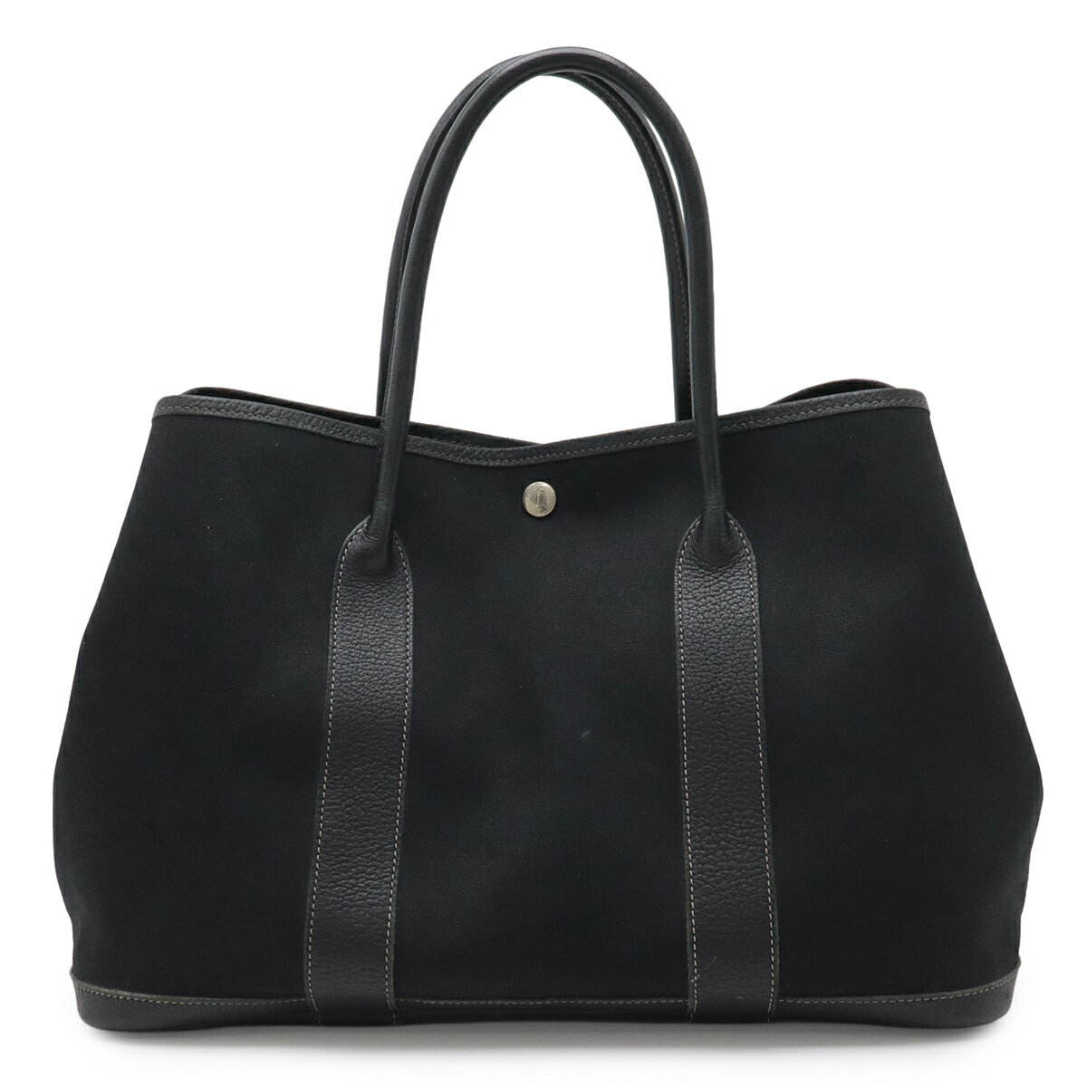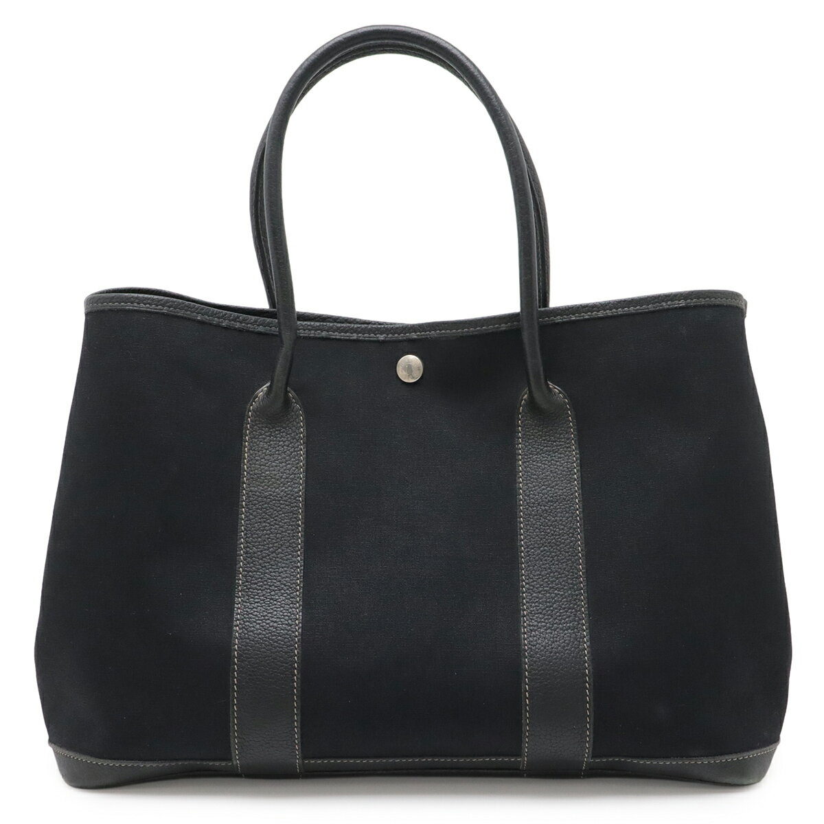 HERMES エルメス ガーデンパーティPM トートバッグ ハンドバッグ トワルオフィシエ キャンバス レザー ブラック 黒 シルバー金具 □O刻印 【中古】 149,800 ~