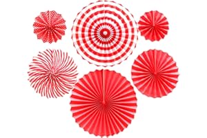 LIANHATA ペーパーファン 6個セット パーティー 装飾 3サイズ 扇子の組み合わせ デコレーション 記念日 バレンタイン 結婚式 お祝い お部屋の飾り つけ (赤)