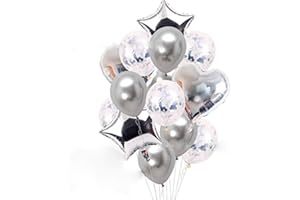 バルーン お祝い 風船 コンフェッティ 飾り 飾り付け 紙吹雪 4種類 誕生日 バースデー ハート 星 イベント パーティ 二次会 セット 結婚式 装飾 デコレーション アルミバルーン バレンタイン シルバー