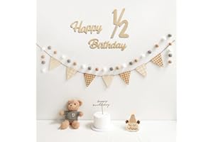 Hanakaze 1/2歳 ハーフバースデー 誕生日 飾り付け フェルト生地 誕生日 飾り セット シンプル おしゃれ バースデー 飾り 女の子 男の子 happy 1/2 birthday ガーランド、ケーキトッパー、フラッグガーランド、フグボール