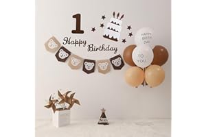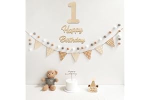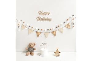 Hanakaze 1歳 誕生日 飾り付け フェルト生地 誕生日 飾り セット シンプル おしゃれ バースデー 飾り 女の子 男の子 大きいサイズ 1歳 happy birthday ガーランド、ケーキトッパー、フラッグガーランド、フグボールガーランド