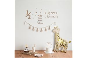 Qkie ハッピーバースデー 飾り フェルト布 ハーフバースデー 女の子 男の子 happy half birthday キリン バルーン、ケーキトッパー、タッセル タペストリー、誕生日ケーキ 飾り 誕生日 飾り 大人 写真背景 子供 飾り お祝い