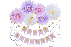 iwlorys 誕生日 飾り 女の子 男の子 セット 花 テーマ パーティー バースデー デコレーション セット 春 夏 装飾 Happy Birthday ガーランド レターバナー ペーパー フラワー ハンギングスワール ガーランド (パープル)