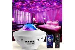スターライト LED プロジェクターライト, スマートフォン制御, リモコン付き, 星空投影, USB電源, ホワイト, 寝室用雰囲気ライト