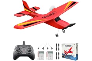 HAWK'S WORK 2チャンネルRC飛行機、RC飛行機は飛ぶ準備ができている、2.4GHzリモコン飛行機、簡単に飛ぶ子供用RCグライダー & 初心者 (赤)