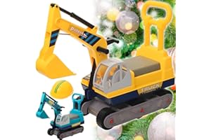 life_mart 子供用 足けり 乗用ショベルカー 乗用玩具 アーム駆動 ヘルメット付き 押して運べる取っ手付き (イエロー)