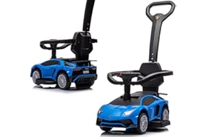 【ハイクオリティ商品】 AIJYU TOYS 足けり乗用玩具 ランボルギーニ アヴェンタドール SV 公式モデル 手押し棒付き 2WAY 乗用玩具 乗り物おもちゃ (ブルー)