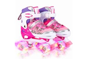 Sowume (ソウーム) 調節可能 子供用 ローラースケート 女の子 レディース 8輪すべて 女の子 スケート 輝き 安全 楽しい発光 初心者向け