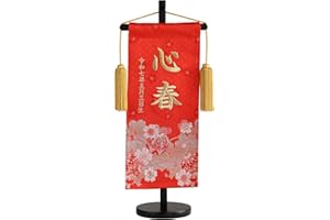 YAMEIRO 名前旗 マリと桜 (赤・金文字) 刺繍名入れ 黒塗りスタンド 生年月日 京都金襴生地