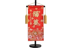 YAMEIRO 名前旗 流水に桜 (赤・金文字) 刺繍名入れ 黒塗りスタンド 生年月日 京都金襴生地