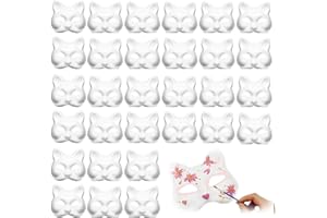 bath&bath キツネのお面 半面 ゴムひも付き 白 無地 紙パルプ製 DIY ペイント 舞台 夏祭り ハロウィン コスプレ (ねこ 30枚)