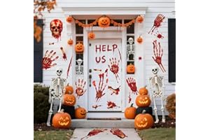 YULOONG 65 枚ハロウィンウィンドウデコレーションステッカー 血まみれの手形 足形 恐ろしい骸骨柄 屋内 屋外兼用パーティーデコレーション 10 枚組