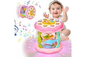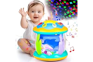 Kabeila 知育玩具 女の子 赤ちゃん おもちゃ ドラム ハイハイ おもちゃ 動く 子供 誕生日 プレゼント 人気 子供用 楽器 音楽おもちゃ 360度回転 プロジェクター 8種類ライト 6つ海洋生物声 デモ曲 早期開発 教育 知育 モンテッソー