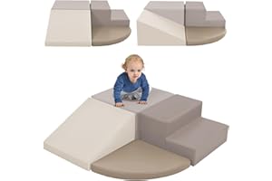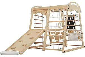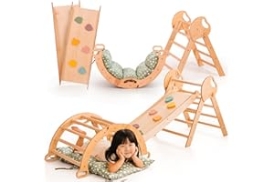 5-in-1クライミングフレーム 子供用 ? 三角ラダー、クライミングアーチ、バランスボード&クッション付き、モンテッソーリクライミングフレーム、1?3歳向け 木製ジム