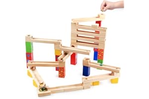 tanoshimu 知育玩具 積み木 おもちゃ ビー玉転がし 木製 ブロック 立体 パズル スロープトイ 迷路 誕生日 クリスマス プレゼント 出産祝い 入園 入学 お祝い 学習 モンテッソーリ STEM 教育玩具 無塗装 (100pcs)