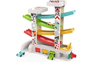 Joyreal スロープトイ 木のおもちゃ - モンテッソーリ 知育玩具 くみくみスロープ 車 おもちゃ 1 2 3 歳 誕生日プレゼント 男の子 女の子 木製の車8台セット ミニカー 指先訓練