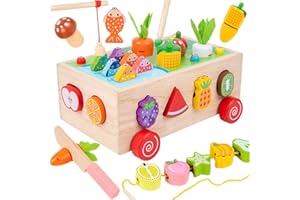 Bajoy 7in1 モンテッソーリ 教育玩具 型はめ 形合わせ はめ込み 指先を使う釣りおもちゃ 紐通し おままごとおもちゃもできる多機能木製 知育玩具 ランキング 3 4 5 6歳 女の子 男の子 クリスマス 誕生日プレゼントギフト (釣り)