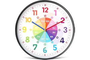 atRise[アットライズ] 知育時計 子供 時計【色分けされて見やすい!】24時間表記 電波式 手動式 アナログ 壁掛け 静音 連続秒針 キッズクロック(電波)