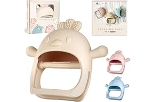 ≪持ちやすい&噛みやすい≫ tecopeco 歯固め シリコン【夢中でかみかみ♪0歳?】洗える はがため おもちゃ 赤ちゃん 柔らかい つかみやすい おしゃぶり 新生児 指しゃぶり 3柄×3カラー♪ 説明書付き ギフトに◎ (コッコ/グレージュ)