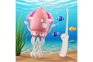 イカ おもちゃ 這いおもちゃ 動く 踊るタコ イカ型電動玩具 自動回避タコ LEDライト&音楽付き 自動障害物回避 USB充電式 釣り竿付き 釣りのまねをする 室内遊び 誕生日 プレゼント (黄色)