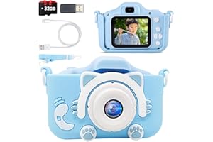 キッズカメラ 子供用 【自撮り簡単・2025新登場】 子供 カメラ トイカメラ 1080P HD 動画カメラ 32GB メモリーカード付き データ転送 保護ケース デュアルレンズ 操作簡単 USB充電 IPS 画面 8倍ズーム タイマー撮影 ゲーム機