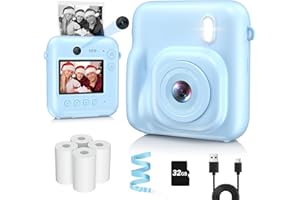 インスタントカメラ プリントカメラ キッズカメラ トイカメラ 感熱紙 カメラ 4800万画素 1080P動画USB充電 デュアルレンズ 自撮り 印刷機能付き 女の子 男の子 新年のプレゼント子供の日 誕生日 クリスマス 32GB メモリーカード 青