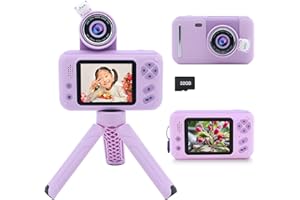 ARNSSIEN キッズセルフィーカメラ(パープル) 180°回転レンズ搭載 子供用デジタルカメラ おもちゃ 2.4インチ画面 32GBカード付属 3歳〜12歳対応 誕生日プレゼント クリスマス ギフト 男の子 女の子用 X101