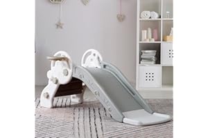 すべり台 室内 子供ブランコ 大型遊具 子供用滑り台 屋内 耐荷重45kg 1-5歳 すべりだい スライダー 屋内 室内 遊具 バスケットゴール キッズ 子供 幼児 誕生日プレゼント クリスマスギフト (ホワイト×ベージュ)