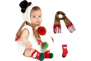 [Stabbon] 雪だるま コスプレ ベビー服 クリスマス 仮装 赤ちゃん ロンパース マフラー 靴下 3点セット フード付き 子ども服 前開き ジャンプスーツ 女の子 男の子 可愛い 柔らか カバーオール サンタ 変装 新年 撮影写真 出産祝い