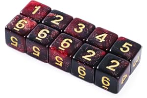 Yourandoll 10個 多面体ダイス D6 (1-6) サイコロ 6面ダイス16mm Dungeons and Dragons DND TRPG MTGサイコロなどテーブルゲーム用 (レッド ブラック 星空)