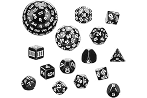 Sustica 100面ダイス 10面ダイス サイコロ ダイス dice 【用途多様な15個セット】 クトゥルフ 占い ロールプレイング テーブルゲーム ボードゲーム パーティー ブラック