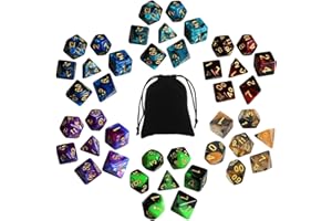 多面体 ダイス サイコロ セット 7サイズ アクリル 6色 42個入り D20 D12 D10 D8 D6 D4 神話TRPG MTG カードゲーム テーブルゲーム用 収納袋付き (6色)