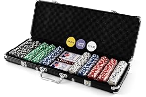 COSTWAY ポーカーセット 500枚チップ 数字無し マット付き ポーカーチップ カジノチップ テーブルゲーム カジノセット ブラックケース