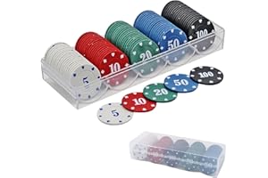 East Leaf ポーカーチップ カジノチップ 5種 100枚 セット 数字あり ケース付き プラスチック