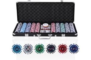 カジノセット ポーカーセット 【本格的なポーカー体験を貴方に】 カジノチップ チップ ポーカーチップ 麻雀チップ カジノ ポーカー 麻雀 ゲームチップ 5色 100枚 200枚 300枚 500枚 (数字あり-ブラックアルミケース付-500枚)