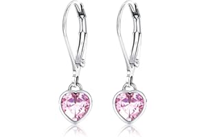 [JeryWe] 女の子のためのハートフープピアス 3ミニハート&クリスタルと925スターリングシルバーピアス、子供のジュエリー誕生日プレゼントのためのフープと小さなイヤリングと低刺激性ダングルフープ