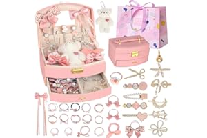 Sitengle ヘアアクセサリーセット かわいい 収納ボックス付き 女の子プレゼント 大容量 プリンセス アクセサリーセット ヘアクリップ ヘアゴム 入園式 入学式 卒業式 子供の日 七五三 誕生日 クリスマス 女の子ギフト お姫様 小学生 プレゼ