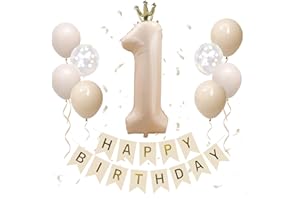 Iysoll 1歳 誕生日 飾り付け 40インチ 大きい 数字 風船 くすみカラー 誕生日 飾り セット 一歳 ナンバーバルーン 王冠付き バースデーバルーン 1 キャラメル