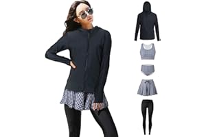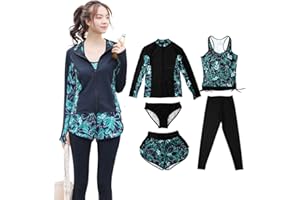 【ARMOTO】フィットネス 水着 レディース 体型カバー 女性 タンキニ 5点セット レギンス 長袖 前開き セパレート スイミング パンツ ブラ …