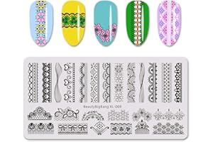 Radiya ネイルプレートスタンピングフレンチレース柄可愛い春夏キレイめイメージプレートスタンプネイルプレートネイルステンシルケース付き長方形スタンピンクネイルプレートアートマニキュアツールネイルアート